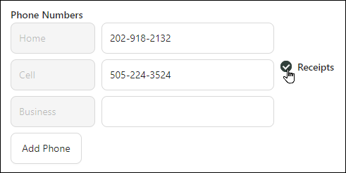 - To set the system to generate read receipts for messages to mobile phone numbers, select the Receipts box to the right of the Phone Numbers field.
